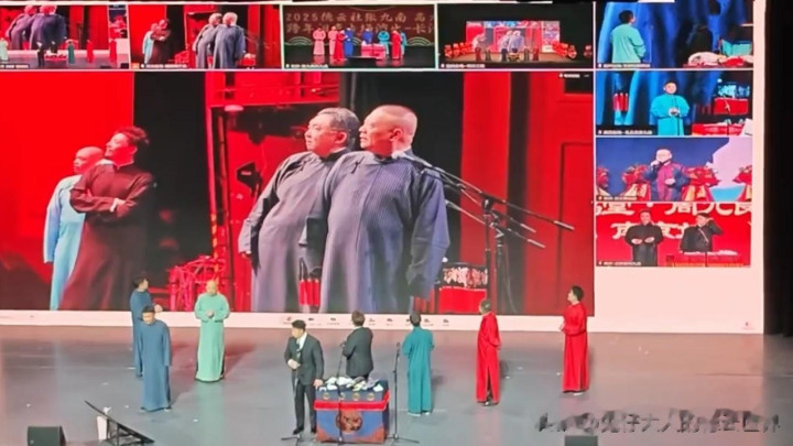 看到郭德纲、于谦身影出现时大屏幕正在与师哥岳云鹏对话,孟鹤堂就开启了解释格局。