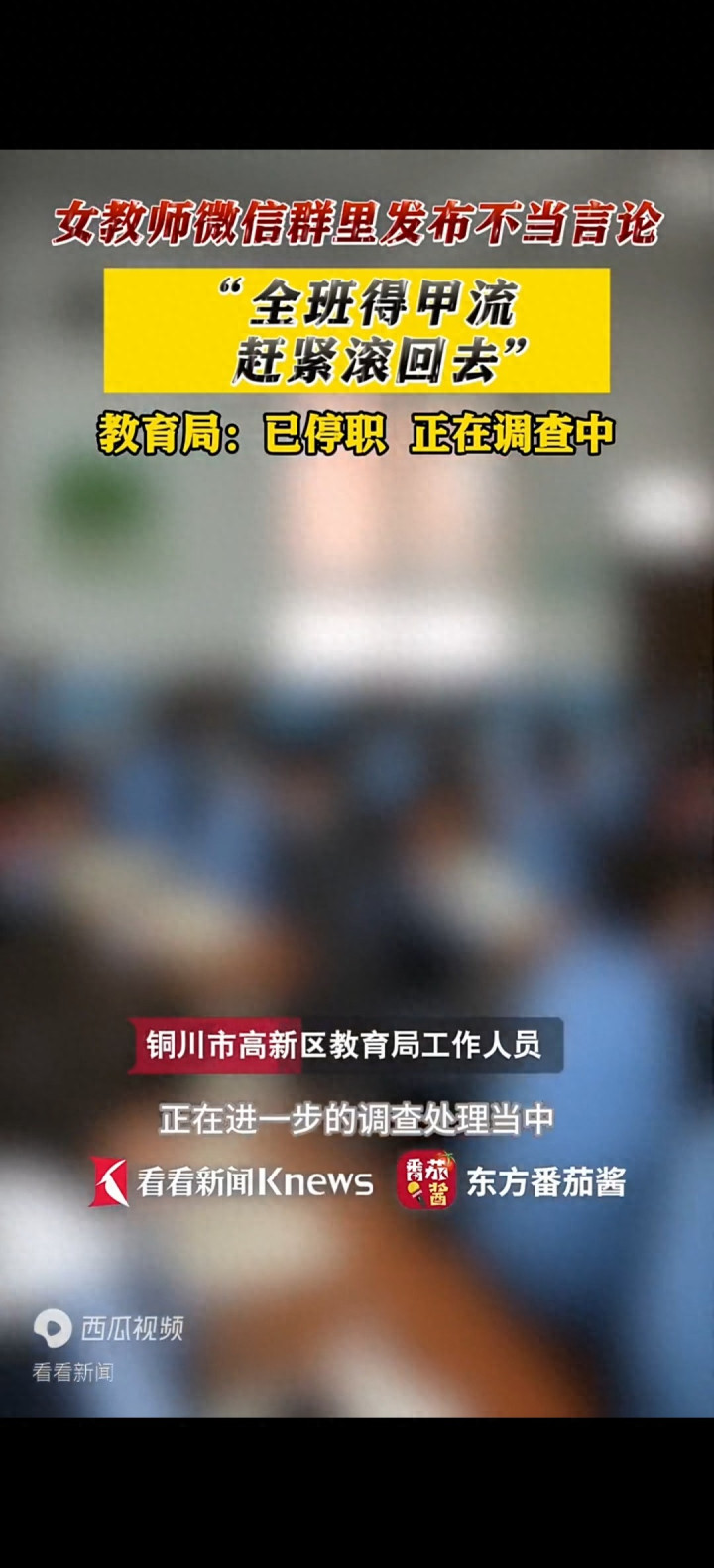 李浑朴当今在家待着恭候处理效果。她地点的学校这几天安排其他浑朴暂期间课。学生家长群里当今基本没东说念主商议这事了,但暗里也曾有辩论。一位初中班主任在一又友圈齰舌,教师讲话得字字严慎,稍有失慎就容易被收拢凭证。